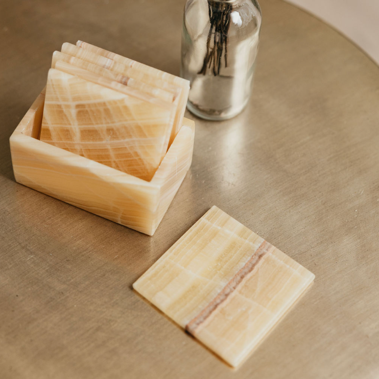 Hailing from Jalisco, these finely crafted marble coasters couple perfectly with our glasses, adding both style and protection to your surfaces. Stone is an element that has it's on unique patterns and no two stones are identical. Our products are sourced from small batches for sustainable practice. View our new limited edition colors for this season.
