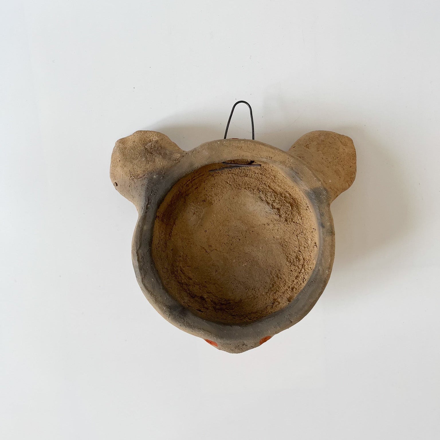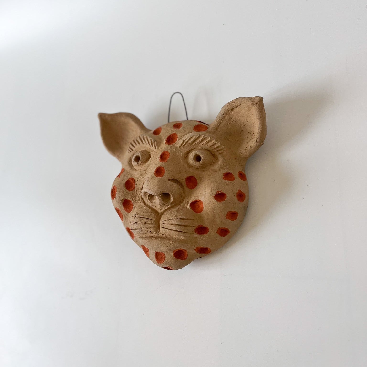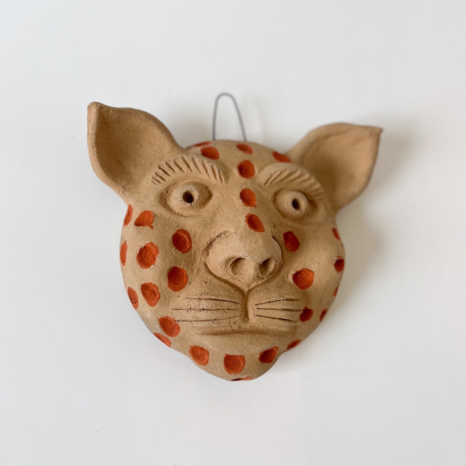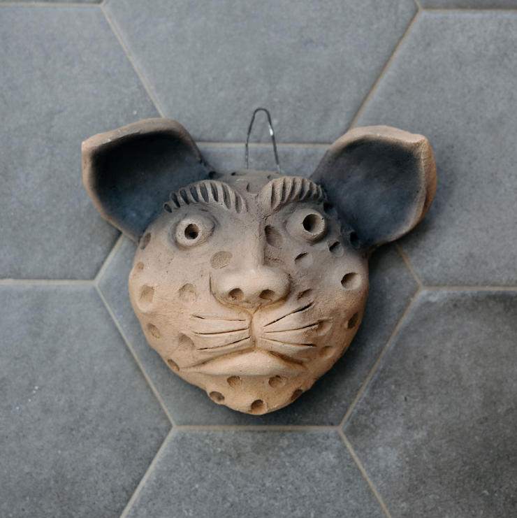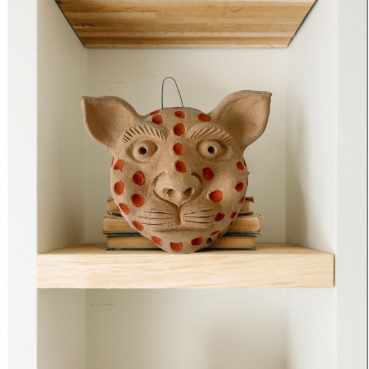 The mask was crafted by ceramist, Elvia from Atzompa, Oaxaca. For the past 45 years she's been producing ceramic work from a traditional underground oven maintaining the hearth manually.