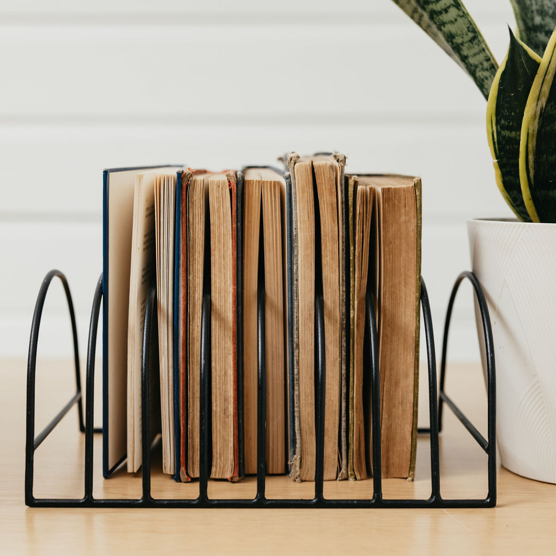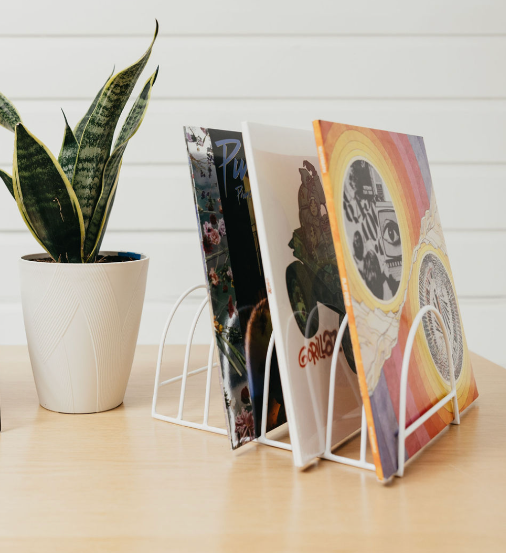 These sleek metal stands serve multiple purposes, accommodating your favorite books and vinyl records in your collection.