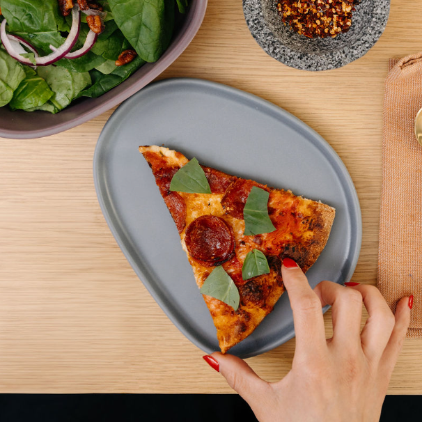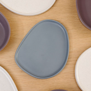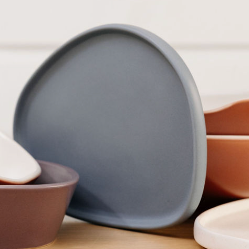 This plate has a playful triangle shape made to fit perfectly with its white counterpart.